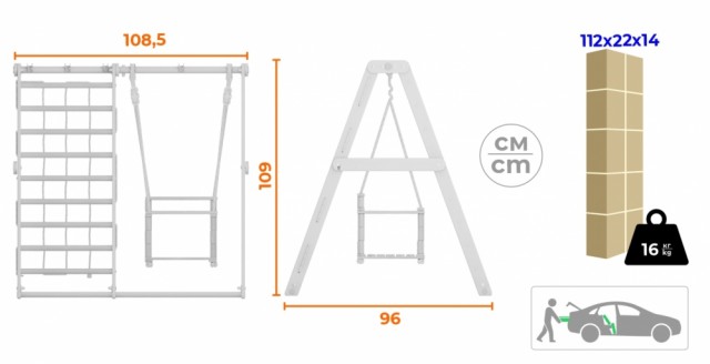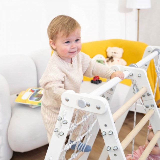 Det inkluderer en klatrestige, et klatrenett og en stoffhuske med pull-up-stang. Barna, mens de leker, utvikler styrke, utholdenhet, finmotorikk og balanse, lærer å kontrollere kroppen sin og får positive opplevelser. Klatrestativ bidrar til å skape en tidlig og lekpreget interesse for fysisk aktivitet, og hjelper foreldre å variere barnets fritid.